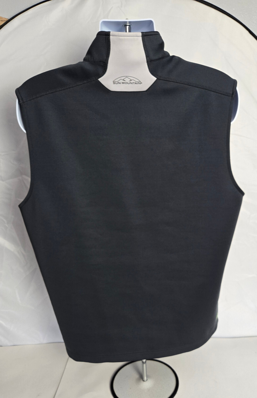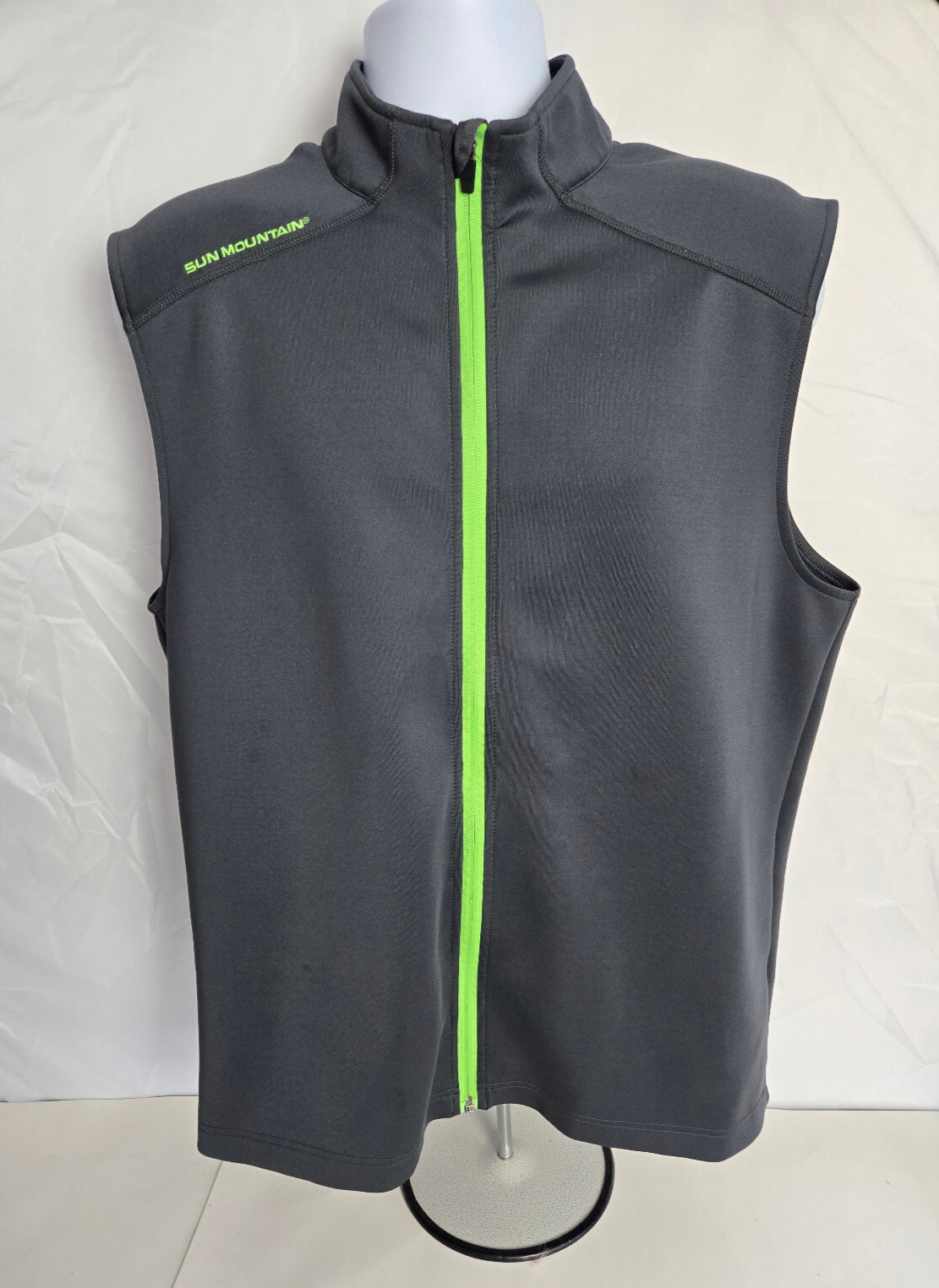 Sun Mountain Mens Thermal Wear Golf Vest Large Gray Full Zip Polyester Stretch Good Pre-Owned Condition - No rips, tears, holes, snags, or stains Approximate Measurements: 29" from top of shoulder to bottom of shirt in front 24" from armpit to armpit across the front