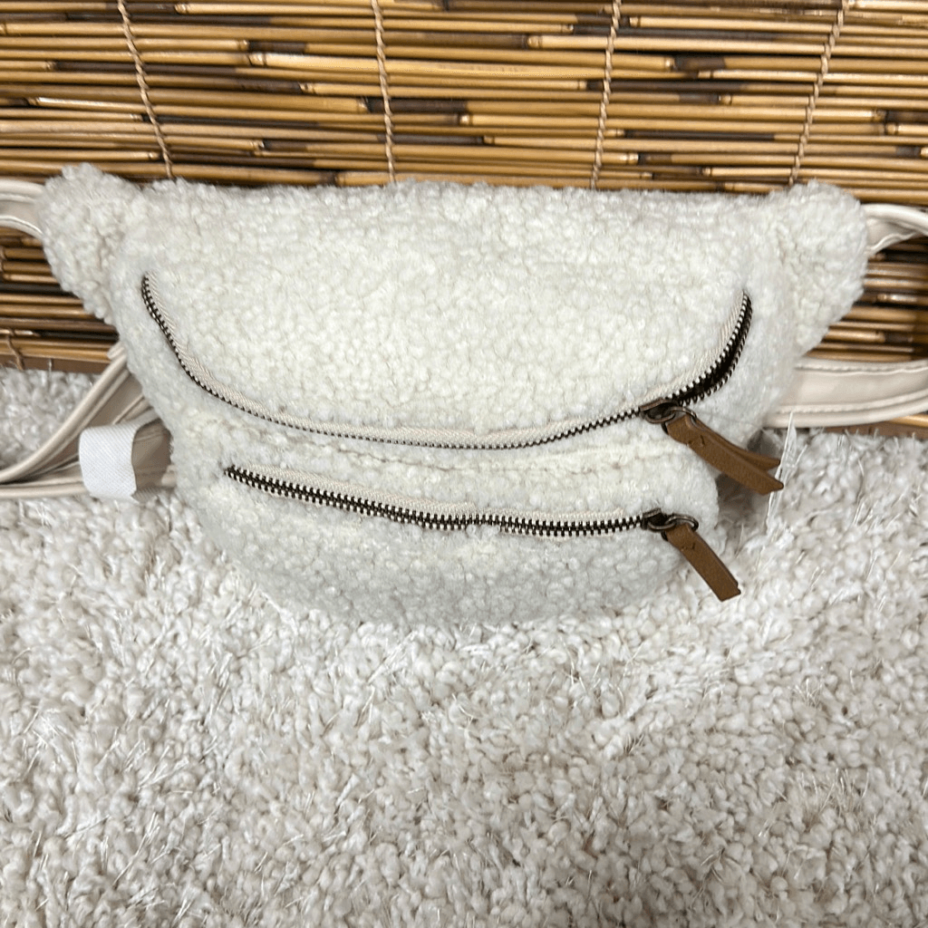 The fleece-covered Kieran waist pack from Sun + Stone looks amazing and features an adjustable strap for total versatility. 1.8 x 0.4 x 5.9 ; strap max length: 41 Zip closure Adjustable strap Polyester/polyurethane Dry clean Imported. D