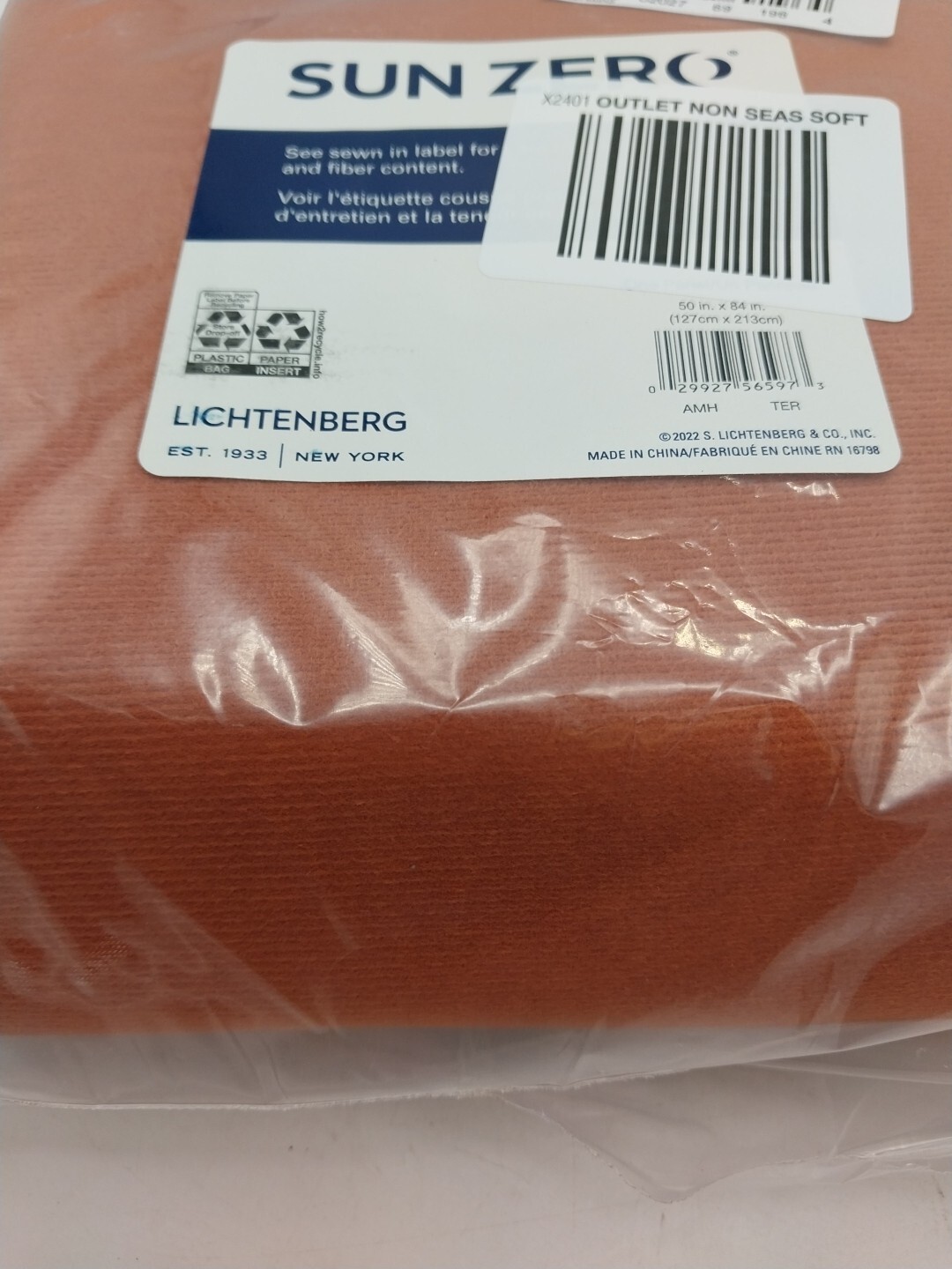 Sun Zero Panel Curtain in Clay color is a classic style blackout curtain made of polyester material. The panel measures 50 inches in width and 84 inches in length, making it suitable for any room in the house. It features blackout technology, making it ideal for indoor use.