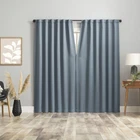 Product details Sun Zero Aria Curtain Panel Pairs provide the ultimate in light blocking technology coupled with magnetic closures to keep out even the harshest of light while bringing an elegant urban sophistication to any room of your home. Sun Zero Extreme Blackout technology is laboratory tested to block out 100% of light, reduce outside noise by up to 45%, and decrease energy lost through your windows by up to 50%. Comfort is optimized with thermal properties that help keep summer heat and winter chill out of your home. Hidden back tabs allow for easy slide-through installation on curtain rods up to 1.5" in diameter. Hang in your entertainment room to eliminate screen glare and reduce distracting outside noise, or in your bedroom for enhanced privacy and a sounder, more uninterrupted sleep. Pair includes 2 panels measuring 104" width by 96" length. Measure carefully before selecting your desired size and quantity. Machine wash cold on gentle cycle. Use non-chlorine bleach when needed. Tumble dry on low heat, using a cool iron as needed. Extreme Blackout technology with magnetic closure blocks out 100 percent of outside light Energy Efficient design reduces energy lost through your windows by up to 50 percent Thermal properties help keep summer heat and winter chill out of your home Noise reduction by up to 45 percent helps you get a sounder, more uninterrupted sleep Hidden back tabs fit curtain rods up to 1.5" in diameter Pair includes two (2) panels measuring 52" w each. Measure carefully prior to purchase. Curtain rod not included. Double rod may be needed for layering.