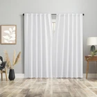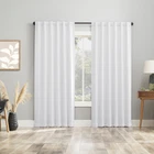 Product details Sun Zero Aria Curtain Panel Pairs provide the ultimate in light blocking technology coupled with magnetic closures to keep out even the harshest of light while bringing an elegant urban sophistication to any room of your home. Sun Zero Extreme Blackout technology is laboratory tested to block out 100% of light, reduce outside noise by up to 45%, and decrease energy lost through your windows by up to 50%. Comfort is optimized with thermal properties that help keep summer heat and winter chill out of your home. Hidden back tabs allow for easy slide-through installation on curtain rods up to 1.5" in diameter. Hang in your entertainment room to eliminate screen glare and reduce distracting outside noise, or in your bedroom for enhanced privacy and a sounder, more uninterrupted sleep. Pair includes 2 panels measuring 104" width by 63" length. Measure carefully before selecting your desired size and quantity. Machine wash cold on gentle cycle. Use non-chlorine bleach when needed. Tumble dry on low heat, using a cool iron as needed. Extreme Blackout technology with magnetic closure blocks out 100 percent of outside light Energy Efficient design reduces energy lost through your windows by up to 50 percent Thermal properties help keep summer heat and winter chill out of your home Noise reduction by up to 45 percent helps you get a sounder, more uninterrupted sleep Hidden back tabs fit curtain rods up to 1.5" in diameter Pair includes two (2) panels measuring 52" w each. Measure carefully prior to purchase. Curtain rod not included. Double rod may be needed for layering.