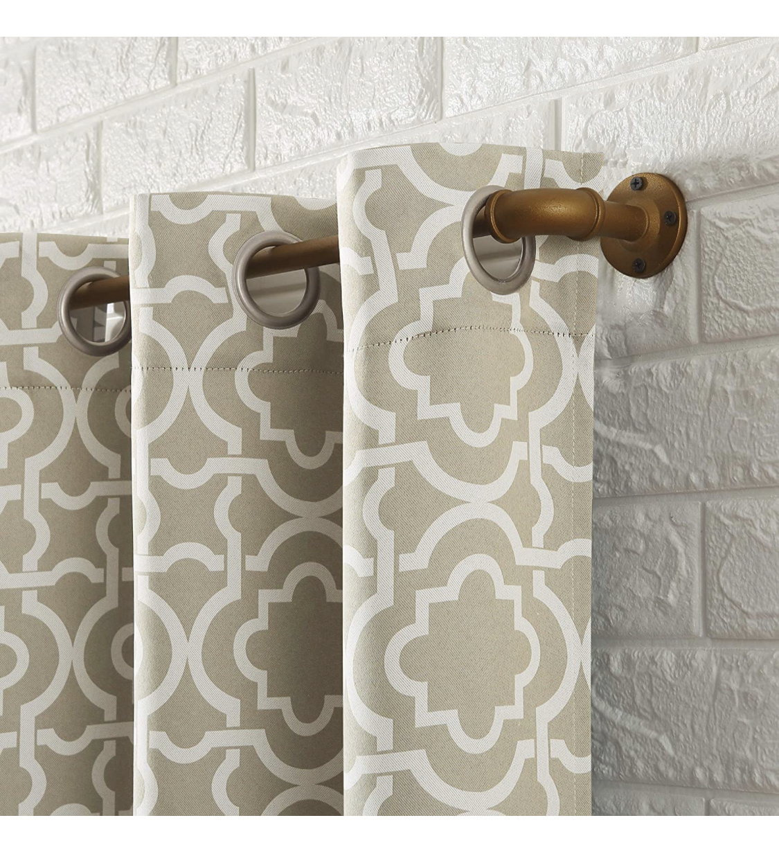 About this item Polyester Trellis geometric design adds sophistication to any room of your home Blackout technology blocks out most unwanted light while enhancing privacy Energy Efficient design reduces energy lost through your windows by up to 30% Thermal properties help keep summer heat and winter chill out of your home Silver metal grommet top fits a standard curtain rod up to 1.5" for easy hanging