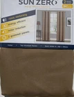 Elevate your home's ambiance with the Sun Zero Fulton Grommet Top Blackout Single Curtain Panel. Designed for versatility, it fits seamlessly into any room, offering both elegance and functionality. The solid black color ensures a sophisticated look, while the modern 40-inch width by 84-inch length dimensions provide ample coverage for a full room blackout effect. Crafted from durable polyester, these panels promise easy care with machine washable convenience. The grommet top makes installation a breeze, and the room darkening, energy-efficient, and noise-reducing features create an ideal environment for rest and relaxation. Whether it's for privacy or light control, these panels are a tasteful addition to your living space. Room darkening panels Energy efficient: keeps out heat & cold Noise reduction: reduces outside noise TWO grommet top panels Fits up top 1.5" curtain rod Measures 40" Wide x 84" Long each panel Machine wash cold, gentle cycle