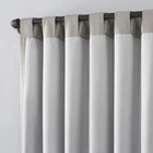 Featuring an elegant duping faux silk fabric with a raw slub texture, Eveline Faux Dupioni Silk Extreme 100% Blackout Back Tab Curtains provide the ultimate in light blocking technology to keep out even the harshest of light while adding opulent radiance to any room of your home. Sun Zero Extreme Blackout Thermal Lining is laboratory tested to block out 100% of light, reduce outside noise by up to 30%, and decrease energy lost through your windows by up to 40%. Comfort is optimized with thermal properties that help keep summer heat and winter chill out of your home. Hang in your entertainment room to eliminate screen glare and reduce distracting outside noise, or in your bedroom for enhanced privacy and a sounder, more uninterrupted sleep. Sold as individual panels measuring 50" width by 95" length in color stone. Measure carefully before selecting your desired size and quantity. Rod not included. Machine wash cold on gentle cycle. Use non-chlorine bleach when needed. Tumble dry on low heat, using a cool iron as needed. Elegant faux dupioni silk fabric with a raw slub texture imparts opulent radiance Extreme Blackout Thermal Lining blocks out 100% of outside light Energy Efficient design reduces energy lost through your windows by up to 40% Thermal properties help keep summer heat and winter chill out of your home Noise reduction by up to 30% helps you get a sounder, more uninterrupted sleep.Back tabs fit curtain rods up to 1. 5" in diameter.material type: Silk Stone