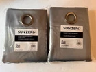 WE DO NOT SHIP TO P.O. BOXES. PLEASE PROVIDE A PHYSICAL MAILING ADDRESS. Item will be shipped free by USPS Priority Mail/UPS within 48 Lower States (NO SHIPPING for Alaska, Hawaii or Puerto Rico) Sun Zero Oslo Home Theater Grade Extreme Blackout Grommet Curtain Panel provide the ultimate in light blocking technology to keep out even the harshest of light while bringing an elegant urban sophistication to any room of your home. Sun Zero Extreme Blackout technology is laboratory tested to block out 100% of light, reduce outside noise by up to 35%, and decrease energy lost through your windows by up to 50%. Comfort is optimized with thermal properties that help keep summer heat and winter chill out of your home. Hang in your entertainment room to eliminate screen glare and reduce distracting outside noise, or in your bedroom for enhanced privacy and a sounder, more uninterrupted sleep. Machine wash cold on gentle cycle. Use non-chlorine bleach when needed. Tumble dry on low heat, using a cool iron as needed. Features: Extreme Blackout technology blocks out 100% of outside light Energy Efficient design reduces energy lost through your windows by up to 50% Thermal properties help keep summer heat and winter chill out of your home Noise reduction by up to 35% helps you get a sounder, more uninterrupted sleep Listing includes a grommet curtain panel PAIR made from machine washable material Machine Wash cold, gentle cycle. Use only non-chlorine bleach when needed. Tumble dry low heat. Cool iron as needed.