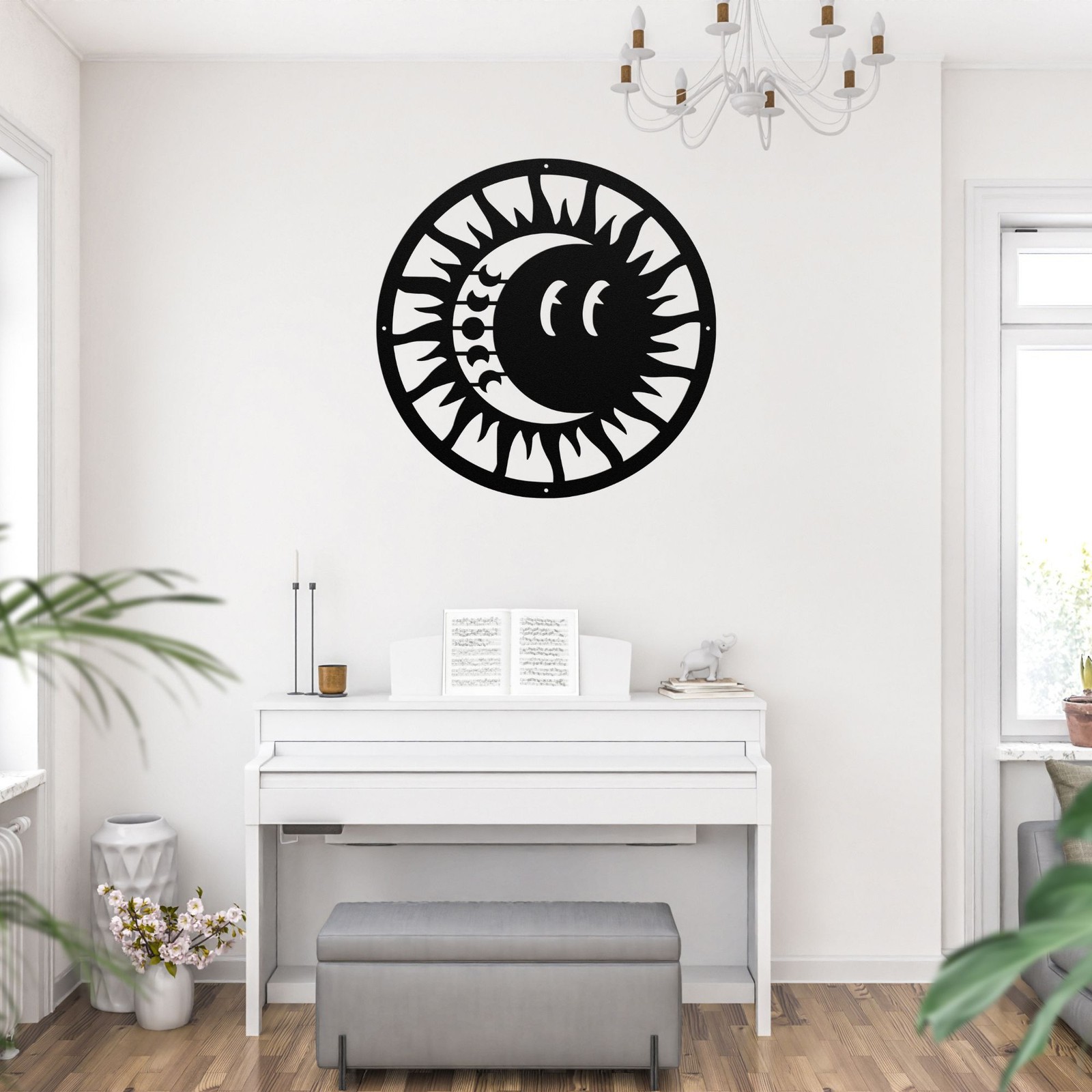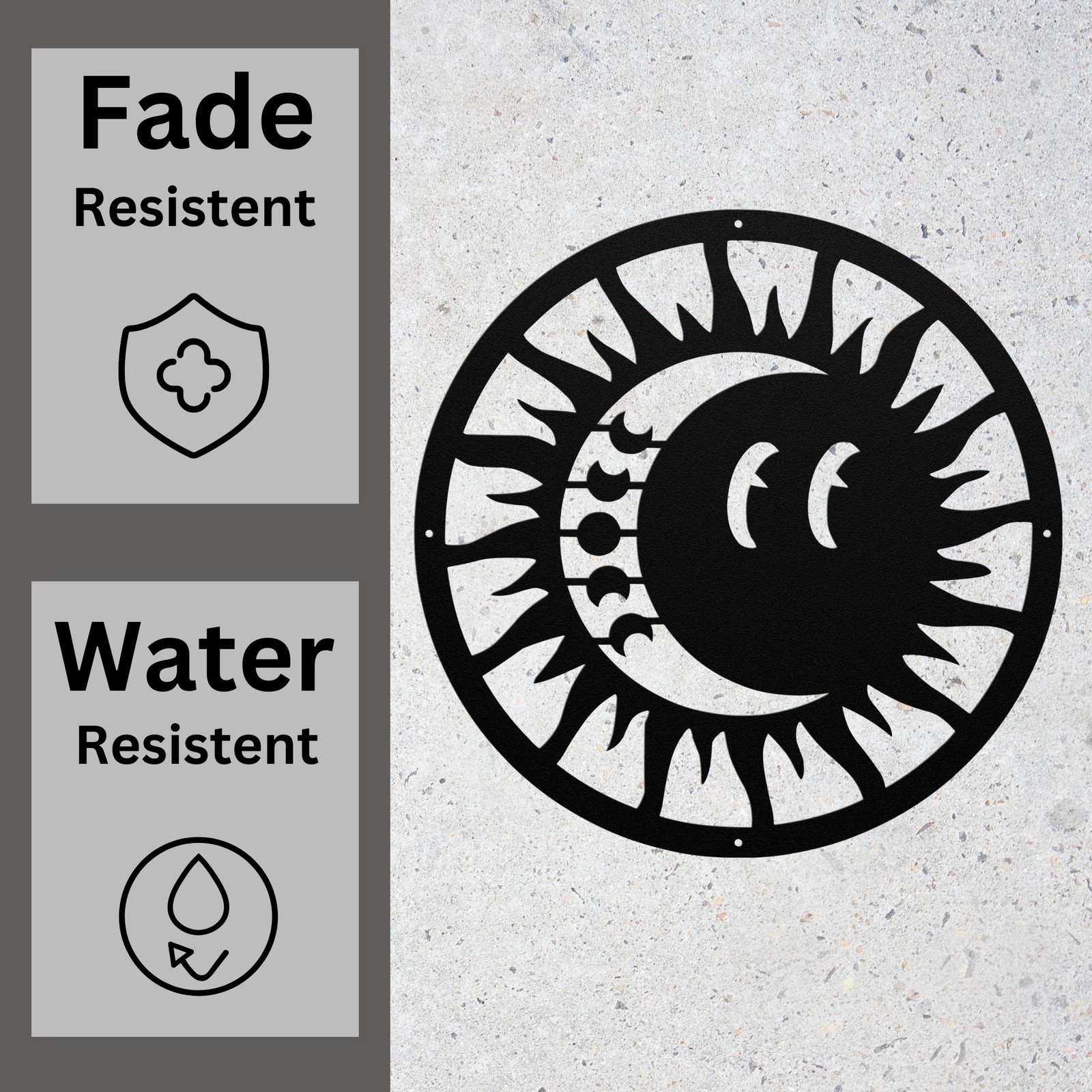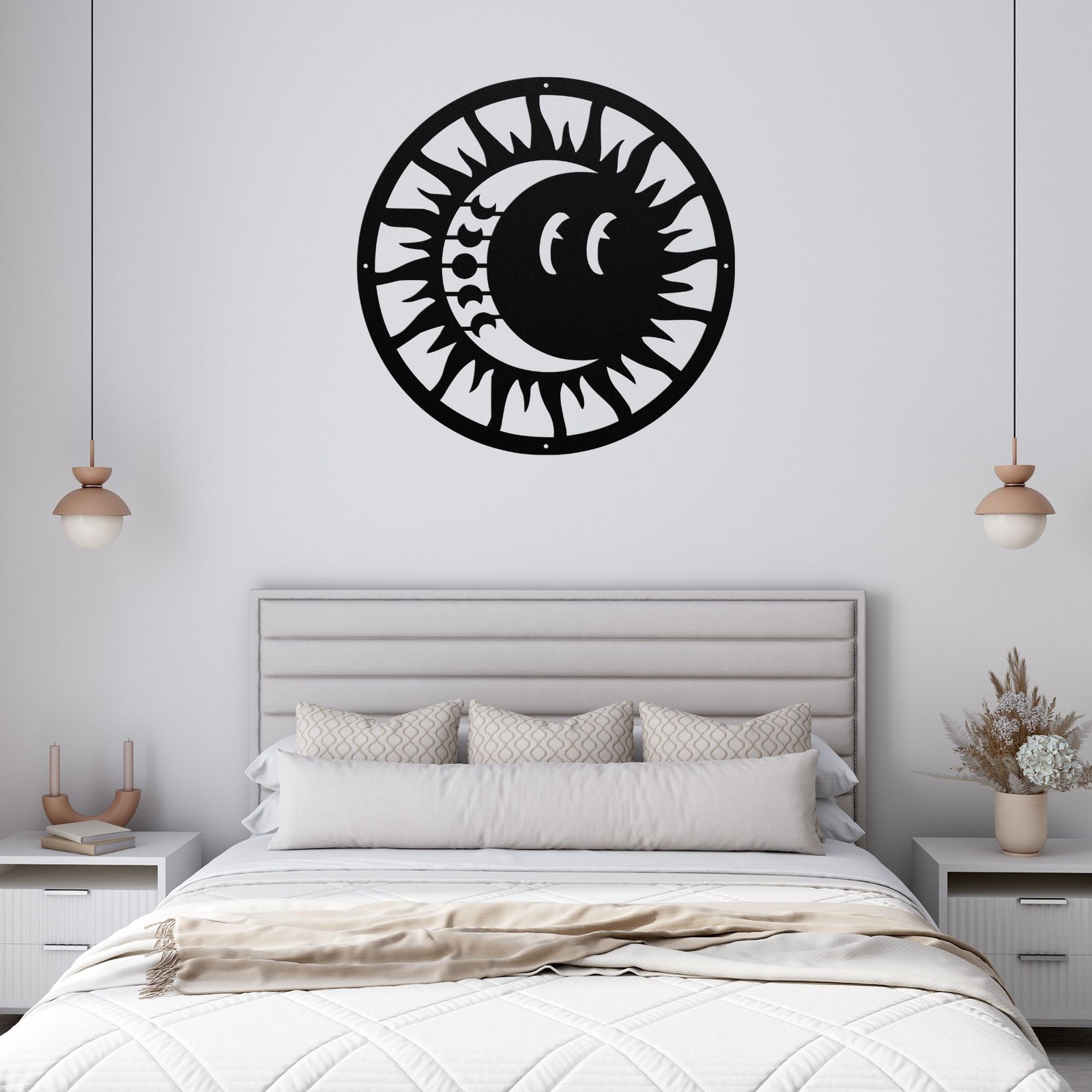 Product Description Bring cosmic charm to your space with this Sun and Moon Metal Decor Art Sign , an elegant and meaningful piece of wall art perfect for home decor or as a thoughtful gift for astrology enthusiasts . Crafted from premium 16-gauge laser-cut metal and finished with a durable powder coating , this stunning decor is designed to last, whether displayed indoors or outdoors. The intricate design highlights the celestial pairing of the sun and moon, symbolizing harmony, balance, and the beauty of the cosmos. Itβs an eye-catching addition to living rooms, bedrooms, offices, gardens, or patios , complementing various decor styles from rustic to modern. Looking for a unique housewarming, birthday, or holiday gift ? This celestial-inspired art sign makes an unforgettable present for astrology lovers, cosmic dreamers, or anyone who appreciates timeless, symbolic decor. Key Features: Durable Quality: Made from sturdy 16-gauge laser-cut metal Weather-Resistant Finish: Powder-coated for long-lasting beauty Celestial Design: Features the symbolic sun and moon, perfect for astrology themes Versatile Decor: Suitable for homes, gardens, offices, and patios Thoughtful Gift Idea: Great for housewarmings, birthdays, or astrology lovers Add a touch of cosmic magic to your home or surprise someone special with this Sun and Moon Metal Decor Art Sign βa timeless piece that radiates elegance and symbolism! Service and Color Choice My metal signs are designed to be personalized just for you, making them the perfect addition to any space! The default color is Black , but I also offer a variety of beautiful options including Copper, Gold, White, and Silver . After placing your order, simply contact me with your preferred color choice, and I'll ensure your sign is exactly how you envision it. Letβs create something special together! π How Metal Signs Are Measured Metal signs are measured from the widest point to the opposite widest point of the design. The listed size (8β, 10β, 12β, 18β, 24β, 30β, 36β, etc.) always refers to the longest edge of the artwork, not the height only and not the width only. Because every design has its own shape and proportions, the other dimension (height or width) will adjust automatically . π Example (30-Inch Size) When selecting a 30-inch sign , the longest side of the design will measure 30 inches . If the design is wider than it is tall: Width = 30 inches Height adjusts proportionally (often around 18β22 inches depending on the design) If the design is taller than it is wide: Height = 30 inches Width adjusts proportionally This ensures the sign keeps its correct proportions and the original shape, no matter which size is selected. π¨ Custom Designs & Logos Welcome Have a special idea in mind? I can make it happen! Whether you need a business logo , family emblem , pet silhouette , or a one-of-a-kind design , I can create it from scratch and turn it into a high-quality metal sign. You can send your concept, sketch, or photo, and Iβll handle the custom design, editing, and production from start to finish. Your vision becomes real metal artwork made exactly the way you want it. β¨ Custom Any Design: If you have a special idea in mind, I can turn it into a metal sign, just message me! π¦ Ordering & Gift-Ready Each sign is crafted to order with great care and attention to detail. Your piece arrives ready to hang , making it easy to display or give as a thoughtful gift. Whether it's for your home or for someone special, every sign is made to impress and last for years. π Your support means the world to me and my family. Thank you for helping keep this small art business growing. π Production & Shipping Every sign is made to order with a fast turnaround time. Production Time: 1β2 business days Free Shipping: UPS Ground (estimated 2β5 business days ) Expedited Shipping: FedEx 2-Day Delivery available at checkout Shipping Location: All orders ship from Indiana, USA Each order is packed securely to ensure your metal sign arrives safely and ready to display.