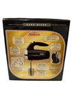Brand New! This Sunbeam Heritage Series hand mixer is a versatile and convenient addition to any kitchen. With a power of 250 watts, it can efficiently mix and bake a variety of recipes. The mixer has six different speeds and comes with a stand for easy storage and use. The sleek black chrome material adds a touch of elegance to the mixer, making it a great addition to any kitchen decor. The display feature allows for easy monitoring of the mixing process. This handheld mixer is perfect for anyone who loves to bake and wants a reliable and easy-to-use tool to help them create their favorite recipes.