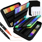 【CONVENIENT, DUAL-POINT MARKERS】This double-end pen can stimulate your imagination and creativity. 0.4mm fine tip is great for sketch outlining & details; 1-4mm soft brush tip for shading and quickly color in large areas art project. Double Tips, Double Fun! 【VIBRANT COLORS】You'll never run out of possibilities or color options with this deluxe coloring markers set. Each set Includes 110 numbered Variety of colors, NO duplicate. And blend beautifully for added dimension to your artwork, and create one you never have before 【SMOOTH & HIGH QUALITY】With water-based, nicely pigmented ink, You can bring rich colors to your artistic creativity. Special fiber tip is easy to layer and mix colors without worrying about smudges. Perfect for coloring books, sketch, illustrations, planner, notebook, calendar, signing art project and more! 【WELL PACKED & GREAT GIFT】Our brush pens are packed in a PORTABLE STORAGE CASE which have pen slots to organize all your colors. Convenient to store in backpack or take outside. All you need is to gift one set of dual pens at Christmas, Valentines day, graduations, birthdays or New Year. 【BRAND SERVICE】The water-based ink is ACID-FREE & NON-TOXIC. No need to worry about ink getting on your skin again. If there has any situation with our dual brush markers of inoperable, damaged, please contact us.