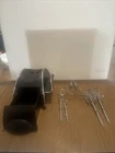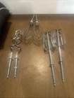 No mixer base with beaters, dough hooks and whisk The Sunbeam Heritage Series Retro 2547 Handheld Mixer Set includes a whisk, dough hook, storage case, and beaters. The set comes in a black and silver color scheme and includes a display accessory storage base.