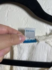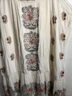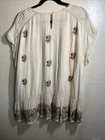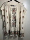 This is a bohemian-inspired tunic top from Sundance for women in size L. It features floral embroidery on an ivory modal viscose fabric, with a round neckline and short casual sleeves. The top is lined and lightweight, perfect for various occasions such as travel, weddings, parties, or everyday wear. Made in India, this blouse has a pullover closure and a regular fit.