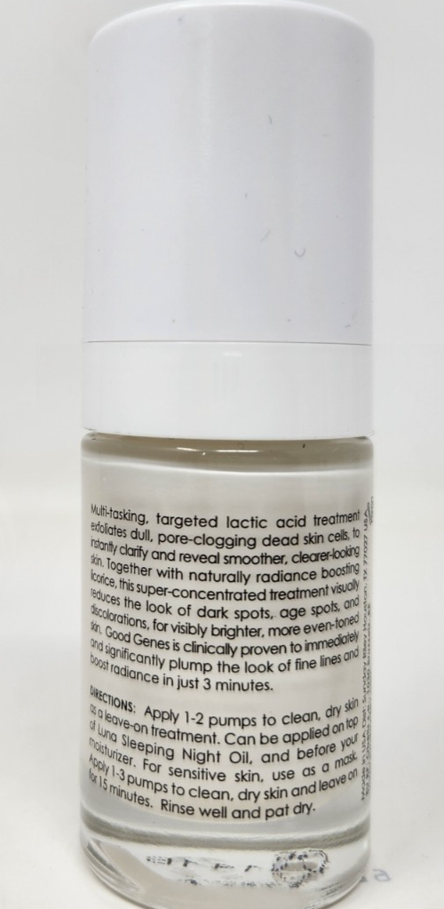 Reveal smoother, clearer, more radiant skin with the cult-favorite Sunday Riley Good Genes All-In-One Lactic Acid Treatment . This potent exfoliating serum is formulated with purified lactic acid to help refine skin texture, brighten dullness, and visibly reduce the appearance of fine lines . Item Details: Brand: Sunday Riley Product: Good Genes All-In-One Lactic Acid Treatment Size: 0.5 oz / 15 ml Condition: New, never used (no box) Packaging: May come without outer box due to retail handling Authentic product; stored in a smoke-free environment Features: Purified lactic acid for gentle yet effective exfoliation Instantly boosts radiance and smooths uneven texture Helps clarify the complexion and minimize the look of pores Suitable for most skin types Layers well with serums and moisturizers