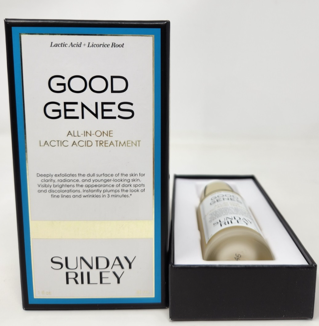 Reveal smoother, brighter, and more radiant skin with Sunday Riley Good Genes All-in-One Lactic Acid Treatment . This cult-favorite treatment uses lactic acid to exfoliate the surface of your skin, diminish the appearance of fine lines, and improve overall texture and clarity. Product Details: Brand: Sunday Riley Product: Good Genes All-in-One Lactic Acid Treatment Size: 1 oz Condition: New, Boxed Features: Helps exfoliate and brighten skin Targets fine lines, wrinkles, and dullness Improves skin texture and clarity Suitable for all skin types Cult-favorite, spa-quality treatment Note: Item is brand new, unused, and comes in its original retail box .