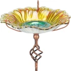 {Sunflower Bird Bath} Uses special substantial nontoxic glass, causes zero harm to birds and other creatures, and this outdoor bird bath has delicate sunflower pattern and distinctively bright-coloured which would attract more birds to bathe {Beauty Meet Function} It's not simply a bird bath, but a bird feeder for outdoor decor use. The bird baths for outdoors can fill with seeds to cater the eating need of birds. Adding some food to attract more birds to forage and rest, creating a quiet habitat for them {Excellent In Quality} The outdoor bird bath bowl was made of hot-melt technology as well as the durable steel stake and feet deal with rust-proof that they could use of years under various natural weather, and won’t be easily broken or fractured {Easy To Cleaning} Structure of dish and shallow edges allowing you to clean bird droppings or dirt easily, and get a fresh look. The four stake feet make the glass outdoor bird bath more stable, reduce shaking {Good Customer Service} Adding more flavor to your garden and attract feathered friends, make your garden more unique, colorful and vibrant. Please feel free to contact us by if you have any questions Product Description Outdoor Bird Bath ----A Beautiful Decoration to Your Garden & Yard Our delicate designed glass bird bath will attract various birds to play in the garden, giving you an extraordinary experience around the year. By simply bringing a beautiful and functional piece of art to your home, a better and lively atmosphere could be created to get on well with your bird neighbors, helping you to improve soil moisture and nutrients, and even beautify your garden, icing on the cake for your garden. Add Some Color To Your Yard Enjoying nature can be as simple as put our outdoor bird bath bowl in your yard, outside or your home and you will often see birds flying. MUMTOP's glass bird bath bowl with metal stake is easy to install, clean and useful ! Using the MUMTOP Bird Bath to invite birds to play in your backyard. They can not only rest, drink, bathe and feed, but also enjoy hours of recreational activities. Look at your feathered friends and get close to nature! As beautiful decorations, you can place brightly colored bird baths in gardens, lawns, yards, walks, flower pots, homes and outdoors. Safe Material Made of hot-melt glass and rustic painted iron, this bird bath does no chemical damage to birds and other creatures. Sunflower Design The design of the glass bird bath is beautiful, anti-rusted protection will extend its service life, easy to catch the eyes of the neighbors, you will get a lot of praise. Bird Baths for Outdoors We are constantly innovating to improve the life experience for yours. This glass bird bath is brightly colored and can easily attract the attention of birds