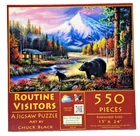 This beautiful 550-piece jigsaw puzzle features a beautiful nature scene created by artist Chuck Black. The intricate design captures the beauty of routine visitors ( Bears ) to a peaceful setting. The puzzle pieces are crafted from durable cardboard material and suitable for ages 8 and up. The vibrant multi-color theme is perfect for puzzle enthusiasts who love a challenge. With its impressive size of 15" x 24", this puzzle is sure to provide hours of entertainment for the whole family. Doing puzzles has some hidden benefits. Excellent qualities : Cultivate concentration, patience, and temper your will Movement development : Train hand-eye coordination and precise small movements Spatial intelligence : Improve visual discrimination of colors and shapes Critical thinking ability : Understand the relationship between parts and the whole, and draw inferences from one example to explore the future Relaxes your mind : Relieve work pressure and release yourself Brain development : Enhance memory and may help prevent brain degeneration We did not work the puzzle or count the pieces, but we verify the number count at your request. Each item we ship is carefully packaged to prevent any damage and is shipped immediately with tracking.
