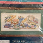 Sunset No Count Cross Stitch The Hat Shop # 13918 is a vintage cross stitch kit from 1989 with a "Hats" theme. The kit includes dimensions for a frame measuring 18"x8". It is a United States-made unit that uses a no count cross-stitch format, suitable for hand embroidery enthusiasts. The package was opened, but is intact. J1-17