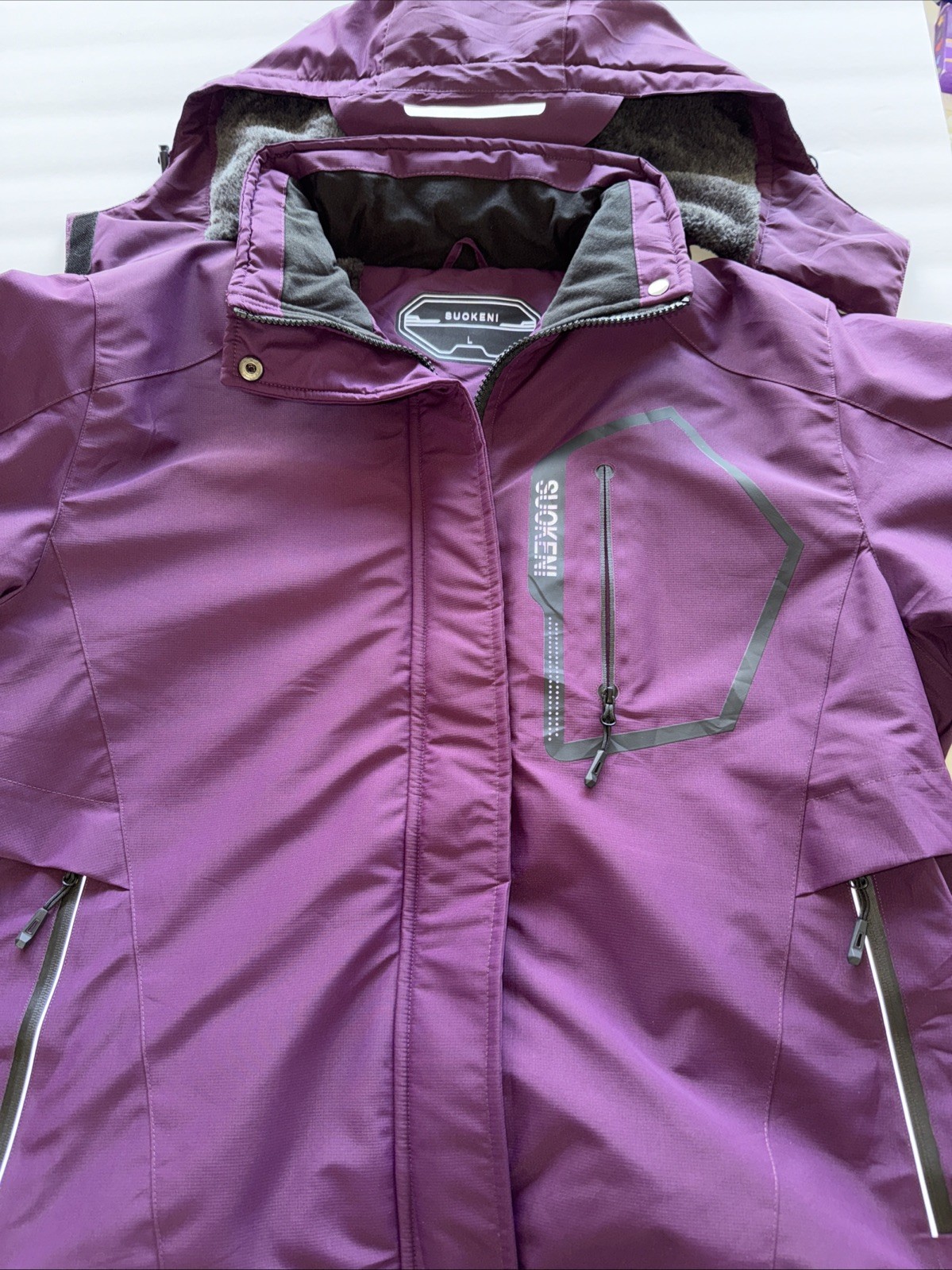 The Suokeni Women’s Waterproof Hooded Ski Jacket is a stylish and functional outerwear option for winter sports enthusiasts. Made of polyester with a waterproof lining, this jacket is perfect for keeping you warm and dry on the slopes. The size L purple color adds a pop of color to your winter wardrobe, while the hooded design and windbreaker style provide added protection against the elements. With machine washable care instructions, this jacket is easy to maintain and perfect for casual occasions. Show off your love for skiing with this high-quality Snow brand jacket.