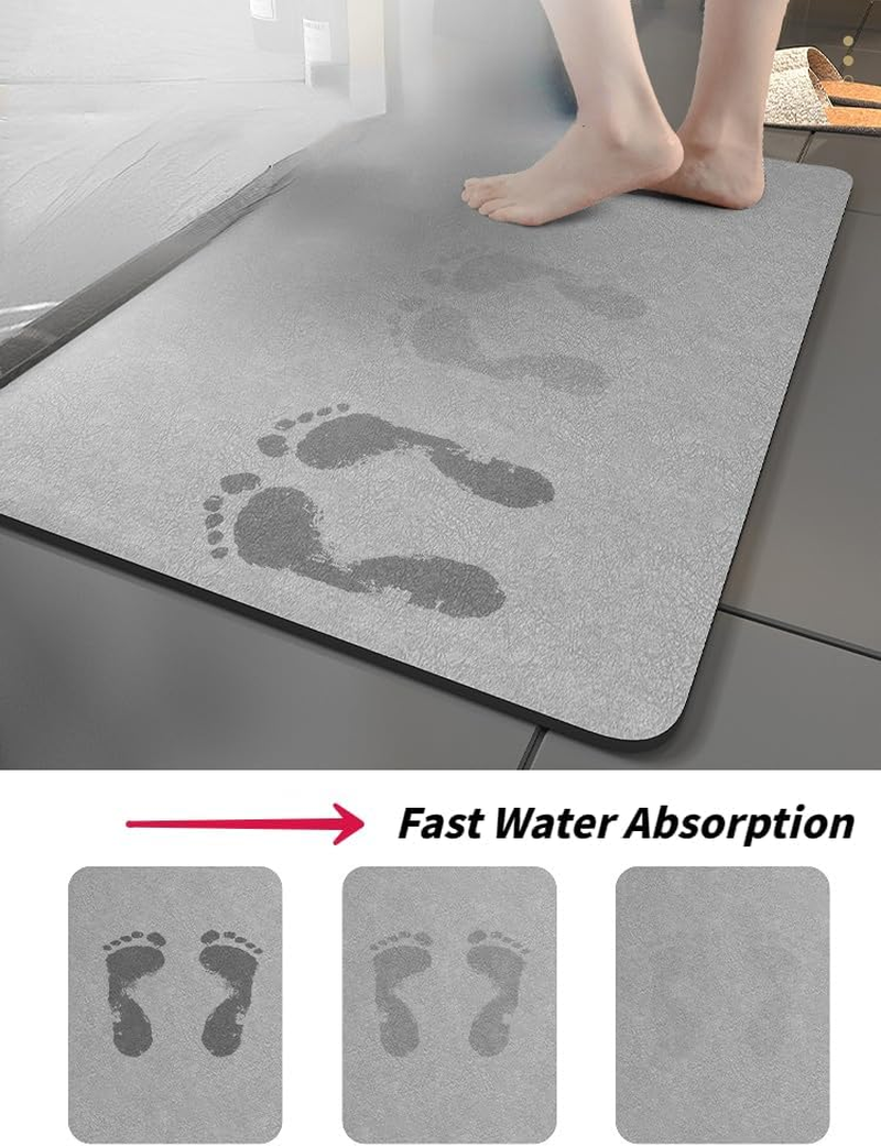 Product Description Super Absorbent Bath Mat Ultra-thin design & anti-slip material It is thin and can be easily placed in any tight place and ensures good water absorption. The bottom is designed with rubber anti-slip material, which can prevent slipping and loosening. Multiple Uses It can be used for bathroom mats, shower mats, kitchen mats, home mats, pet mats, sink mats, living room mats, outdoor mats, etc. Can be used anywhere you want It also can use for dogs or cats mat. 3 seconds dry - Super Absorbent Using Absorbent material, it can quickly absorb water, and it can absorb water within ten seconds, and the bathroom mat becomes dry automatically. Excellent Anti-slip The bottom is designed with rubber anti-slip material, which can prevent slipping and loosening, has great adsorption force, and is more safe and comfortable.
