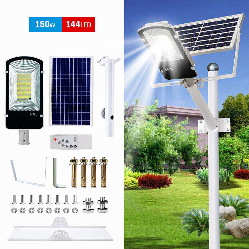 Product Description Super Bright Commercial Solar Street Light Dusk to Dawn Road Lamp+Pole+Remote Specifications: ★【Super Bright】 Equipped high quality 2835 SMD LED beads;Provides over 150w light 15000 Lumens of brightness and reaches 200-300m² illumination range ;No struggle to see in dark places;Built-in 3.2v-13.5Ah large capacity lithium battery with a long life of 50,000+ hours;Working time is up to 20 hours after 4-6 hours fully charged,about 72 hours in dim mode.;Long-lasting and highly efficient solar panels,fast charging and high conversion rate ★【Dusk to Dawn Sensor & Remote Control】 Built-in smart sensor,lights will turn on automatically at dusk, and turn off at dawn. Upgraded Remote Control -ON/OFF Function;Auto Mode- automatically lights up at night,automatically turns off during the day;Timing function-3H,5H,8H ;.Full / Half brightness mode;Brightness increase /decrease mode; ★【Easy to Install】 The kit contains the installation accessories set. You can effortlessly mount them on a tree, pole, balcony, wall, or any desired outdoor spot. These solar powered street lamps can be instantly mounted as long as there is a wall or a pole. ★【Durable&Sturdy&Maintence-free 】 Thickened die-cast aluminum case;IP65 waterproof rating; Dust-proof, rust resistant, corrosion resistant, and bad weather resistant; Designed to withstand any severe weather condition, including snowstorms and hurricanes, ultra reliable;Cost savings;No need to run pesky wires under your lawn, and no batteries that need replacing at the most inconvenient times.Safe-less risks of fires and burns; Environmentally friendly; ★【Widely Used】 Ideal for Plaza, Park, Garden, Courtyard, Street, Walkway, Pathway, Campus, Farm, Perimeter Security etc;Also can be used in Urban roads, industrial areas, residential areas,Elegant design,it will add a nice touch to your outdoor space;an excellent choice for any outdoor Package Content Per Box: 1 x Solar Lamp 1 x Solar Panel 1 x Remote Control 1 x Accessories; Notice: Please allow 1-3cm error due to manual measurement and make sure you do not mind before ordering. Please understand that colors may exist chromatic aberration as the different placement of pictures. Versand Payment We accept payment via Paypal only. Payment must be completed within 10 days. If you have any problems about payment, please contact us via ebay message. Delivery details We only ship to confirmed Paypal addresses. Please comfirm that your paypal address is in line with your shipping address. Please kindly note that the c ombined shipping is not provided because the shipping fee is calculated by weight. Also, the each additional item means exactly the the same color and size. It takes about 7 -15 working days to US; about 10-30 working days to other countries. Transit time may be a little delayed because of the bad weather and customs inspection . If you do not receive your item within 30 working days since payment finished, please contact us immediately for further assistance. Contact us We strive for 100% customer satisfaction! Positive Feedback is very important to us. If you have any questions, p lease feel free to contact us via "Ask seller a question" . We will reply your email within 24 working hours. Versand Payment We accept payment via Paypal only. Payment must be completed within 10 days. If you have any problems about payment, please contact us via ebay message. Delivery details We only ship to confirmed Paypal addresses. Please comfirm that your paypal address is in line with your shipping address. Please kindly note that the c ombined shipping is not provided because the shipping fee is calculated by weight. Also, the each additional item means exactly the the same color and size. It takes about 7 -15 working days to US; about 10-30 working days to other countries. Transit time may be a little delayed because of the bad weather and customs inspection . If you do not receive your item within 30 working days since payment finished, please contact us immediately for further assistance. Contact us We strive for 100% customer satisfaction! Positive Feedback is very important to us. If you have any questions, p lease feel free to contact us via "Ask seller a question" . We will reply your email within 24 working hours. powered by