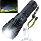 eBay Product Description Powerful flashlightwith powerful rechargeable battery built into the flashlight!charges VIA USB cable!! Product Description 【Super Bright Flashlight】Our 1000 lumen tactical flashlight utilizes the durable XHP50 LED chip,provides poweful light,4 times brighter than flashlight. Max beam distance up to 500 meters (1640ft).With a lifetime up to 50,000 hours.Attention:You need get it fully charged before use.please make sure the battery "+" face the inside. 【Rechargeable Flashlight】With rechargeable battery,it can be charged by usb cable(included),low light modes for 6 hours use.Power indicator above the flashlight helps you to know the statu of the battery clearly. 【5 Modes Flashlight】Features with 5 different modes:High,Medium,Low,Strobe,SOS.Easy to change modes by pressing the switch button gently.Mini size fits in your hand or pocket,backpack, survival bag,or car glove compartment. 【Waterproof & Durable】IP65 Waterproof level protect it from splashing water from any angle.Suitable for outdoor environment and adverse weather conditions.Please do not submerge in water for a long time.This flashlight is made of aluminum alloy,skid-proof, abrasion resistance,which is a sturdy tool to hit something during emergency. 【Widely Application】Convenient to operate by one hand with lanyards and compact enough to carry to anywhere in your pocket.Ideal for dog walking,hunting, boating,power outages,patrolling,camping,hiking,emergency.Perfect gift for a father, husband, wife, or college student for any occasion.If you have any question,please feel free to contact us,we promise you a refund/replace anyway. Product Features Utilized upgrade 4 CORE LED with a lifespan of 500,000 hours. Made by military-grade aluminum alloy, premium solid built body. Can be charged via a car/wall adapter, computer or power bank. IP65 waterproof for extreme conditions indoors or outdoors 5 Light Modes: High/Mid/Low/Strobe/SOS With power indicator light