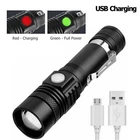 Flashlight Material: Aluminum Color: Black Modes: High/Low/Strobe Size: As Picture Show Package Include: 1X Flashlight or 2X Flashlight 1X USB Cable or 2X cables 1X Rechargeable Battery or 2X Rechargeable Battery Features: 1. Super Bright LED flashlight: Installed with bright T8 light bulb, can reach 200 - 300 meter. 2. USB Charging: Come with usb cable, easy to be charged by any usb interface like power bank, car charger. 3. Adjustable Focus: 3 modes ( High/Low/Strobe) and wide-to- narrow beam zoom makes this flashlight ideal for use around the house, dog walking, or camping. 4. Small and Lightweight: Compact enough to fit in your pocket, backpack, or purse allowing for easy storage and quick access. 5. IP65 Waterproof: Perfectly used in the rain, snow or emergency situations. 6. Pocket clip design :The pocket clip helps to keep the flashlight from rolling away when it & apos;s placed on a flat surface and can be tied to belt, makes this small flashlight perfectly as your EDC flashlight.