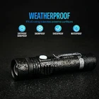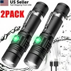 Powerful flashlight with powerful rechargeable battery built into the flashlight!charges VIA USB cable!! 1.Super Bright LED flashlight: easily light up an entire room or focus in on objects up to 600 feet away! 10 times brighter than old incandescent lights. 2.USB Rechargeable Flashlight: Coming with USB cable, Rechargeable Flashlight could Conveniently charged by any USB interface , like power bank , car charger , computer , and so on . 3.Adjustable Focus,& 4 Modes: 4 Useful Settings (High|Low|Strobe|SOS) and wide-to-narrow beam zoom makes this flashlight ideal for use around the house, dog walking, or camping. 4.Compact &Pocket-size flashlight:This flashlight size is only 4.96inch ,compact enough to fit in your pocket, backpack, or purse allowing for easy storage and quick access. 5.Water resistant :This Tactical flashlight is IPX6 waterproof, perfectly used in the rain, snow or emergency situations. Ideal for use around the house, dog walking, camping, hiking or fishing. 6.Pocket clip design :The pocket clip helps to keep the flashlight from rolling away when it's placed on a flat surface and can be tied to belt, makes this small flashlight perfectly as your EDC flashlight 7.upgrade overcharging protection design, the flashlight will automatically stop charging when it get full charged . ttention Please: Please do not point the flashlight in anyone’s eyes directly Package included: A: 2x Flashlight+2x USB cable B: 1x Flashlight+1 x USB cable