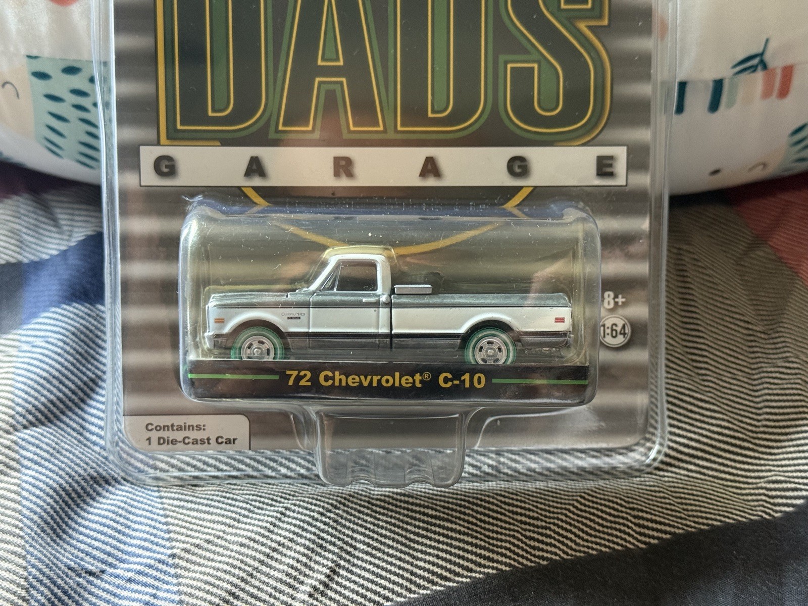 The product is a 1:64 scale diecast 1972 Chevrolet C-10 pickup truck in a RAW green color. It is part of the MAUI FEST 2017 series by Greenlight and features a limited edition chase model. The Chevrolet C-10 is themed as "Dad's Garage" and is suitable for kids aged 8 and up. This collectible item comes in an unopened box and is a must-have for both boys and girls who are fans of classic pickup trucks.
