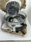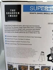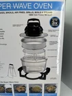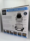 The Sharper Image Super Wave Oven is a 1300 watt infrared convection oven with a capacity of 16 quarts. Made of stainless steel, this electric oven features a sleek silver design and comes in its original box with components like a rack, lid, recipes, glass bowl, and base included. With Energy Star compliance and a focus on efficiency, this Super Wave Oven by Sharper Image offers a versatile cooking experience using both infrared and convection oven capabilities. Ideal for home cooking needs, this oven delivers quality performance and convenience.