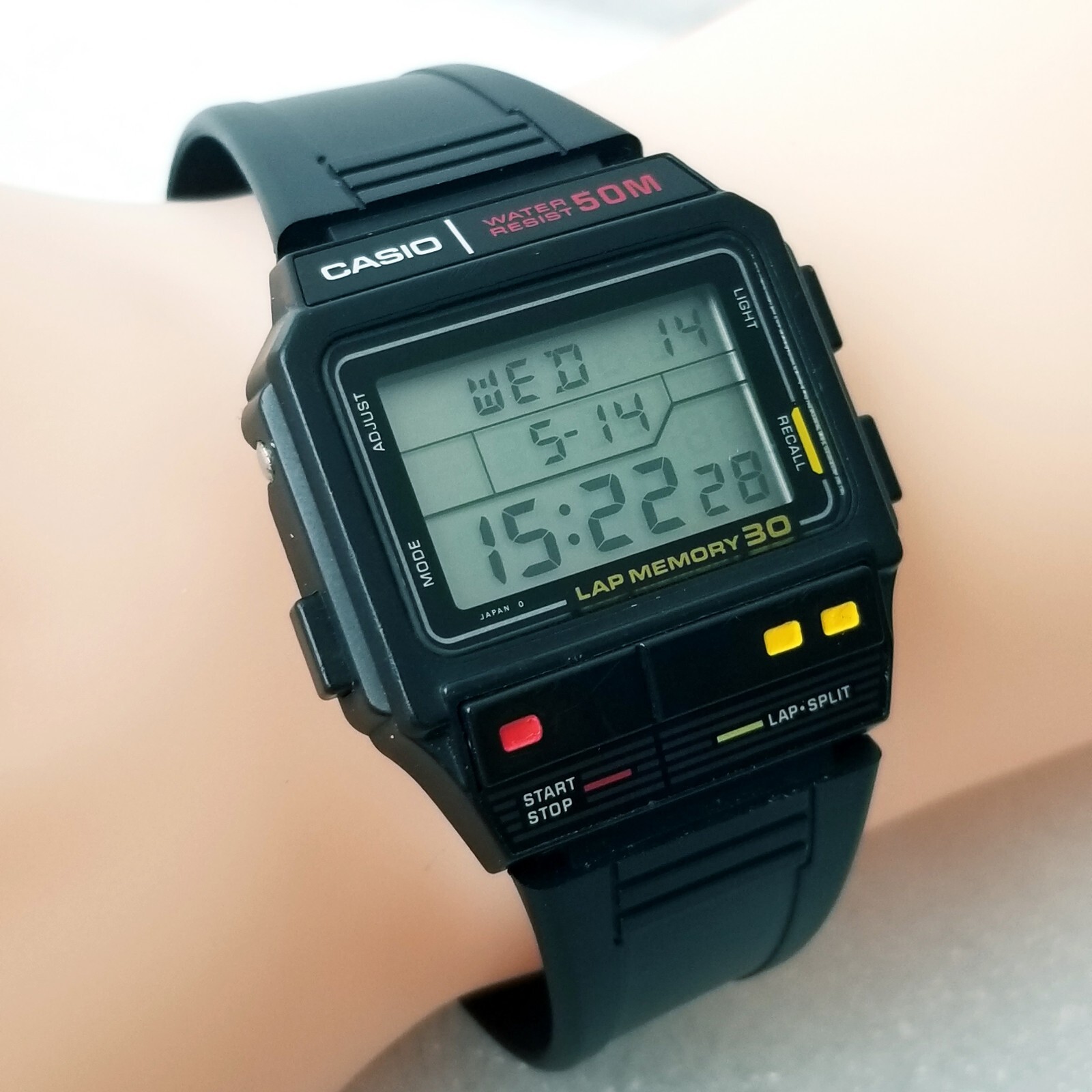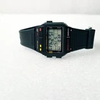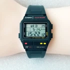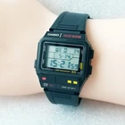 This vintage 1986 Casio SDB-300W Sports watch is a rare find, made in Japan and boasting a quartz movement. With a water resistance of 30 meters, the watch features a 24-hour dial, 12-hour dial, and 24-hour index, all displayed on a digital LED screen. The black strap and case complement each other, making this unisex watch suitable for adults, teens, and kids alike. Packed with features like an alarm, chronograph, and date indicator, this Casio vintage watch is a timeless piece perfect for everyday wear.