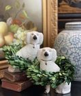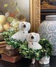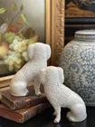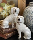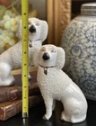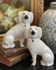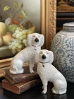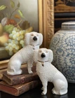 Splendid Rare White English Staffordshire Figural Spaniel Mantle Dog Pair • Textural Coats • Rare Style with Separate Legs • Gallery Quality • Height 6.5” This is a stunning pair of sought after English Staffordshire mantle dogs featuring glimmering textural coats in classic form and rarely found finely modelled, intact separate front legs. Highly desirable for their timeless style, this superb pair of right and left facing figures will bring a touch of the English countryside to any setting in which they are placed when paired on their own or as part of a collection or arrangement. Rare surviving examples to own and enjoy. Condition excellent. * Listing is for white textural mantle dog pair only. Other objects are for display purposes. Height 6.5” Width 3”