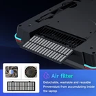 1. Boosted Cooling Pioneer: The industrial-grade turbo fan (with a maximum speed of 5000 RPM) combined with the combined sealed sponge creates a huge wind pressure, accelerates the air flow, and achieves rapid cooling. 2. Stepless Speed Regulation: The speed regulation range of the fan is between 0 and 5000 rpm, which can meet various heat dissipation needs. It can be adjusted to the most suitable speed whether in office, gaming or standby mode. 3. Better Compatibility: The combined sponge design and the appropriate body size make it compatible with laptops ranging from 13 to 19 inches. 4. RGB Lighting Effects: With seven colors and covering 5 lighting modes, it can create more than 100 lighting effects, successfully creating a gaming atmosphere. The change rate of the lighting can be adjusted, the lighting mode has a memory function, and the lighting can also be turned off. 5. USB Hub: The side of the fuselage is equipped with an independently powered USB Hub extender. 6. Good News for Laptop with Rear Exhaust Ports: The design of the bottom air intake fundamentally solves the heat reflux problem of laptops with rear exhaust ports.