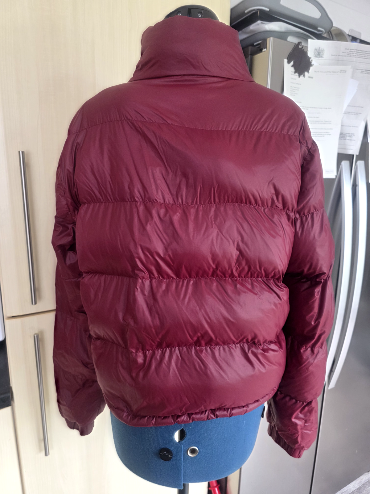 SUPERDRY DOWN FILL OUTDOOR ISSUE SHORT MAROON PUFFER JACKET FULL ZIP WITH ZIP POCKETS & SLEEVE LOGO UK 10 PIT-PIT 20" LENGTH 21" I FLATTEN TO POST AS KEEPS POSTAGE COSTS DOWN