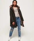 Superdry women’s Frankie faux fur lined parka jacket. Cosy up in style this season with the Frankie faux fur lined parka. This parka features a removable faux fur trim on the hood, a fleece upper lining, a quilted lower lining and zip and popper fastening. The parka also features four front pockets, and the adjustable waist means you can get your perfect fit. The Frankie faux fur lined parka is completed with Superdry logo badges on the sleeves and further faux fur trim detailing on the lining. uk 12 pit-pit 22" LENGTH 34" NICE PRE WORN CONDITION STILL SELLING ON SD WEBSITE FOR £149 SMOKE/PET FREE HOME