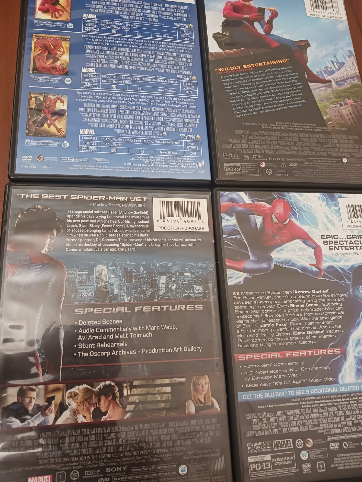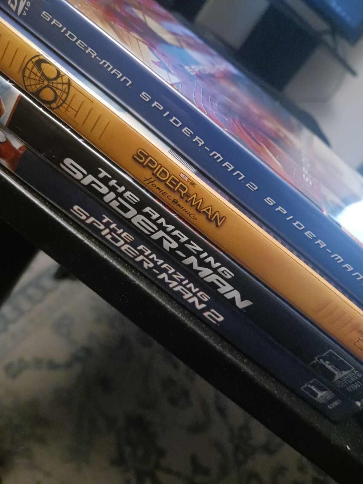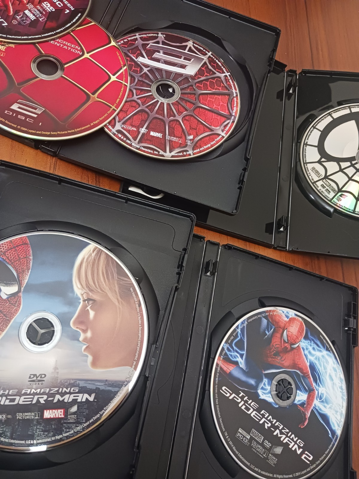 Spiderman DVD collection in like new condition. Movie set contains Spiderman 1, 2, 3, Homecoming, The Amazing Spiderman 1, and 2.