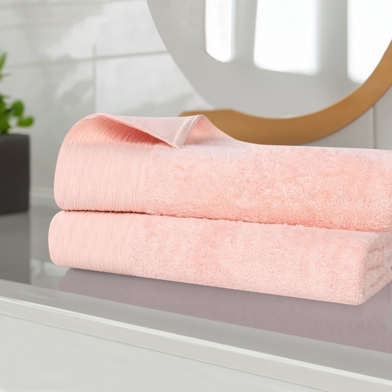 Undeniably fluffy and plush, the Superior Sierra Rayon From Bamboo Cotton Blend Bath Sheet Set is a stylish and practical addition to your bathroom. Our bamboo cotton blend bath sheets have a luxuriously soft feel and are naturally hypoallergenic, ideal for people with allergies or sensitive skin. Featuring an eco-friendly design that stays fresher longer and resists shrinking, wrap yourself in the extra clean feeling of these absorbent and oversized towels. The medium weight thickness of each bath sheet is perfect for the bath, poolside, or at the beach. Displaying a beautifully textured border, these bath sheets are available in Pink, Navy Blue, Charcoal, Light Blue, White, Ivory, Green, Platinum Grey, and Yellow Gold color options to match your bathroom decor style. This bathroom Free Shipping Over $49.99* Details Superior Sierra Rayon From Bamboo Cotton Blend Bath Sheet Set of 2 Product Description: Undeniably fluffy and plush, the Superior Sierra Rayon From Bamboo Cotton Blend Bath Sheet Set is a stylish and practical addition to your bathroom. Our bamboo cotton blend bath sheets have a luxuriously soft feel and are naturally hypoallergenic, ideal for people with allergies or sensitive skin. Featuring an eco-friendly design that stays fresher longer and resists shrinking, wrap yourself in the extra clean feeling of these absorbent and oversized towels. The medium weight thickness of each bath sheet is perfect for the bath, poolside, or at the beach. Displaying a beautifully textured border, these bath sheets are available in Pink, Navy Blue, Charcoal, Light Blue, White, Ivory, Green, Platinum Grey, and Yellow Gold color options to match your bathroom decor style. This bathroom essentials set includes 2 bath sheets to indulge yourself in soothing comfort every day. Feature Set includesTwo (2) Bath SheetsCrafted from 40% Rayon from Bamboo and 60% Cotton Solid, Textured Wave Border Available in Pink, Navy Blue, Charcoal, Light Blue, White, Ivory, Green, Platinum Grey, and Yellow Gold color options Naturally hypoallergenic, eco-friendly, and ultra-soft; Ideal for people with allergies or sensitive skin Extremely durable, resists piling and shrinkage; Highly-absorbent to get you dry quickly Attached hanging loop allows you to easily hang your towel Pairs with Modern, Casual, Contemporary, or Transitional bathroom decor styles We're committed to make products safer for you and safer for the world; STANDARD 100 by OEKO-TEX certified; Every component of this product has been tested and verified free of harmful substances and produced sustainably For the most luxurious results, we recommend to wash with like colors, tumble dry low, and remove promptly from the dryer. Please follow care label instructions for best results. Dimensions Each bath sheet measures 34 inches wide by 68 inches long