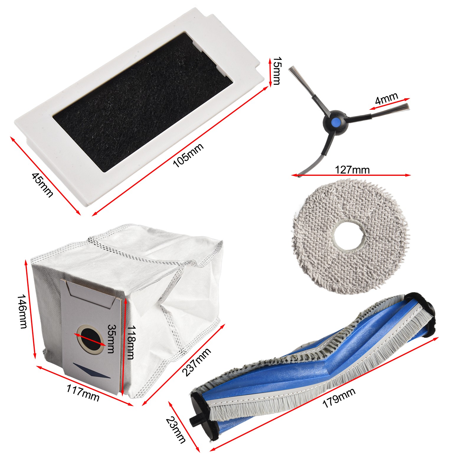 Superior Cleaning Experience with For Deebot T30 PRO OMNIT30 MaxT30 Accessories DESCRIPTION Features: *Perfect Compatibility: Specifically designed for Deebot T30 PRO for Omni/ T30 Max/ T30/ DDX14 Vacuum Cleaner, these replacement parts and accessories are fully compatible, ensuring a seamless fit and optimal performance. *Effective Components: The main side brush, filter, mop cloth, and dust bag are made with high-quality materials, guaranteeing durability and long-lasting use. They effectively capture dirt, dust, and debris for thorough cleaning. *Enhanced Cleaning Performance: With these replacement parts and accessories, your vacuum will maintain its excellent cleaning performance. The main side brush sweeps along edges and corners, while the filter and dust bag trap fine particles, and the mop cloth provides a gentle and efficient mopping. *Convenient and Easy Installation: Replacing the parts and accessories is quick and effortless. Just remove the old components and snap the new ones into place. No tools or technical expertise required. *Extend the Lifespan of your vacuum: By regularly replacing worn-out parts, you can prolong the lifespan for Deebot T30 PRO for Omni/ T30 Max/ T30/ DDX14 Vacuum Cleaner. These reliable replacement parts and accessories ensure that your robot vacuum operates at its best, delivering consistent cleaning results. Specifications: *Product Name: Spare Parts Set *Material: Plastic+Filter Paper, ABS+Nylon, Nonwoven Fabric, Cloth *Size: No *Color: White, Black, Blue *Fitment: for Deebot T30 PRO for Omni/ T30 Max/ T30/ DDX14(1个主刷+2个滤网+4个边刷+4个抹布+5个活性炭尘袋)属性2:(1个主刷+4个滤网+6个边刷+6个抹布+8个活性炭尘袋) *Number of Pieces: 16/25 Package Content: A: 1*Main Brush+ 4*Mop Cloth+ 2*Filter+ 5*Activated carbon Dust Bag+ 4*Side Brush B: 1*Main Brush+ 6*Mop Cloth+4 *Filter+ 8*Activated carbon Dust Bag+6 *Side Brush Note: 1. The real color of the item may be slightly different from the pictures shown on website caused by many factors such as brightness of your monitor and light brightness. 2. Please allow slight manual measurement deviation for the data. POLICES Shipping Payment WARRANTY We only ship to confirmed ebay Order addresses. Please comfirm that your Order address is in line with your shipping address. Please kindly note that the combined shipping is not provided because the shipping fee is calculated by weight. Also, the each additional item means exactly the the same color and size. It takes about 7-15 working days to Australia; about 10-30 working days to other countries. Transit time may be a little delayed because of the bad weather and customs inspection. If you do not receive your item within 30 working days since payment finished, please contact us immediately for further assistance. Payment must be completed within 5 days. If you have any problems about payment, please contact us via ebay message. We strive for 100% customer satisfaction! Positive Feedback is very important to us. If you have any questions, please feel free to contact us via "Ask seller a question" . We will reply your email within 24 working hours.
