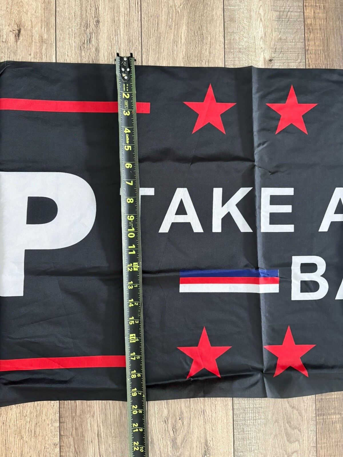 Take America Back Trump 2024 fence/yard flag— flag/banner has ties on each corner and measures approx 115x 20