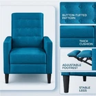 You may also like Ergonomic Kneeling Chair Rocking Stool Home Office Posture Relief Support New 140.78 USD 148.19 USD Free shipping 5% off Lightweight Waterproof Closed Cell Foam Camping Sleeping Pad Outdoor Use Comfort 22.05 USD 23.21 USD Free shipping 5% off 4-Leg Ironing Board W/ Cotton Cover Felt Pad Adjustable Height Portable Storage 49.07 USD 52.84 USD Free shipping 7% off Outdoor Bar Table Cast Aluminum Bistro Desk Umbrella Hole Garden Furniture New 151.61 USD 159.59 USD Free shipping 5% off Natural Marble Mortar Pestle Set Grinding Herbs Spices Nuts Pesto Guacamole New 46.92 USD 49.39 USD Free shipping 5% off Full Motion TV Wall Mount 40-86 Inch TV Heavy Duty Tilt Swivel VESA 600x400 New 69.21 USD 72.85 USD Free shipping 5% off Diatomaceous Earth Dish Drying Mat 3Pcs Set Quick Drying Non-Slip Absorbent New 43.4 USD 45.68 USD Free shipping 5% off Industrial Wire Shelving Kit 4Tier Heavy Duty Adjustable Storage Rack Silver New 216.34 USD 227.73 USD Free shipping 5% off 30QT Turkey Fryer Propane Boiler Steamer Stock Pot Outdoor Cooking Kit Silver 121.25 USD 127.63 USD Free shipping 5% off 1/4HP Submersible Sump Pump Thermoplastic Float Switch 1800GPH 25ft Lift Black 89.59 USD 94.3 USD Free shipping 5% off 5-Piece Fireplace Tools Set Indoor Outdoor Sturdy Metal Poker Shovel Tongs Stand 92.67 USD 97.55 USD Free shipping 5% off Insulated Stainless Steel Tumbler 30 Oz Mug Handle Leakproof Locking Lid 2-Pack 28.36 USD 29.85 USD Free shipping 5% off Crafted from solid and manufactured wood, this recliner chair is wrapped in high-density foam and a hard-wearing polyester covering. The sinuous metal springs and sturdy frame ensure a supportive and firm experience. Maximum weight capacity up to 331 lb. The footrest instantly pops up by simply pushing at the backrest and stops at any angle from 0 to 90 degrees. With an assembled size of 26. 5″ W × 32″ D × 40. 5″ H, this modern fabric recliner fits easily in narrow nooks and small spaces like bedrooms, game rooms, small living rooms, home theaters, RVs and can be easily move around. This recliner chair requires 2 easy setup steps - screw in 4 legs, slot the back onto brackets, and done! No tool is needed and illustrated assembly instructions is included. Modern Tufted Fabric Push Back Recliner with Pocket Spring, Blue Sturdy Construction Comfy & Supportive Reclined Back & Pop-up Footrest 5-minute Setup Residential Use Indoor Recliner Color: Blue Material: Polyester Fabric, Manufactured Wood, Solid Wood, Foam, Meta Assembled Dimensions: 26. 5″ W × 32″ D × 40. 5″ H Seat Depth: 20. 7″ Seat Width: 20″ Seat Height: 19″ Fully Reclined Length: 58. 7″ Backrest: 20″ W × 24. 6″ H Footrest Adjustable Angle: 0-90° Maximum Weight Capacity: 331 lb Item Weight: 52. 9 lb Shipping Weight: 59. 5 lb Note: 1. For your safety, please don't jump or stand on this recliner. 2. Please allow a 0. 5″ measurement tolerance. You may also like Cordless Caulking Gun Battery Powered 21V Electric No Drip 4 Speed 300ml New 56.31 USD 59.27 USD Free shipping 5% off 25Ft 10Gauge Heavy Duty Outdoor Extension Cord Waterproof Lighted End 15Amp SJTW 50.44 USD 53.09 USD Free shipping 5% off Round Gas Fire Pit Glass Wind Guard 20in Tempered Flame Shield Outdoor Patio New 93.85 USD 98.79 USD Free shipping 5% off Insulated 64oz Stainless Steel Water Bottle W/ Paracord Handle Molle Sleeve New 70.39 USD 74.09 USD Free shipping 5% off Jungle Tiger Area Rug Non Slip Soft Low Pile Machine Washable Indoor Rug 5x7 FT 61.74 USD 74.09 USD Free shipping 17% off Carbon Fiber Nylon Filament 1.75mm PA6 CF 3D Printer Industrial Engineering 1kg 54.99 USD 57.88 USD Free shipping 5% off 2-In-1 Mop & Sweep Deluxe Multi-Surface Cleaner Heavy Duty Cloths Easy Storage 28.41 USD 29.91 USD Free shipping 5% off Heavy Duty Metal Porch Swing Chair 800 LBS Capacity Easy Assembly Outdoor Garden 139.6 USD 146.95 USD Free shipping 5% off Nonstick Mini Frying Pan 5.5 In Egg Skillet Durable Ceramic Cookware Kitchen New 17.01 USD 17.91 USD Free shipping 5% off 2-Slice Toaster Extra Wide Slots Bagel Function Breakfast Kitchen Appliance New 27.92 USD 29.39 USD Free shipping 5% off Indoor Panini Press Grill Nonstick Sandwich Maker Easy Clean Healthy Cooking New 38.37 USD 41.32 USD Free shipping 7% off Simple Design Computer Writing Desk W/ Shelves Durable Compact Easy Assembly New 62.82 USD 66.13 USD Free shipping 5% off