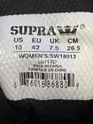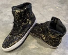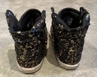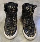 Supra Skytop Skate Shoes Black & Gold SW18013 Sequin Metallic Women's Size 10 Pre-owned. See photos for condition details. To upcycle, I reuse shipping material as often as possible. Buy more from my store and save on shipping.