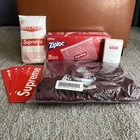 This Supreme Accessories Bundle comes with a T-shirt that will definitely make heads turn. The brand, Supreme, is a well-known name in streetwear culture and this bundle is perfect for anyone looking to add some style to their wardrobe. The bundle includes various accessories that will complement your outfit and make you stand out from the crowd. The T-shirt has been tried on but never worn. Still in original bag.