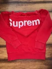 The Supreme Box Logo Hooded Sweatshirt in red, size small, is a stylish activewear piece suitable for both men and women. It features a unisex fit with a pullover style, perfect for those looking for comfort and style in one garment. The iconic Supreme branding adds a touch of streetwear flair to the overall look, making it a versatile addition to any wardrobe for casual or athletic occasions It says it’s a small, but it definitely is more like a youth extra large. You can see the measurements for the exact measurements.