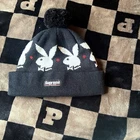• Barely worn. Great CND 🐇 • 📦Free shipp Elevate your winter wardrobe with this stylish Supreme Playboy Jacquard Beanie from FW17. Made with high-quality materials, this beanie is perfect for any fashion-forward man looking to stay warm and comfortable during the colder months. The classic black color and iconic Playboy branding make this beanie a must-have accessory for any Supreme fan. This beanie is one size fits all, making it a great gift option for any man in your life. The jacquard fabric is durable and will stand the test of time, ensuring that this beanie is a staple in your winter wardrobe for years to come. Don't miss out on the opportunity to add this Supreme Playboy Jacquard Beanie to your collection.