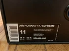 Size 11 - Nike Supreme x Air Humara 17 Blue (WORN ONCE) NO sticker inside. Condition is Pre-owned. Shipped with FedEx Ground or FedEx Home Delivery.