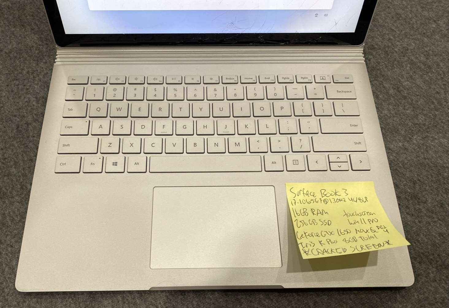 Graphics Processing Type: Hybrid Graphics Seller Notes: “BROKEN SCREEN, works perfect, see pictures!!, inspected, clean, reset, and ready to GO!!” Hard Drive Capacity: 256 GB Color: Silver Release Year: 2019 Storage Type: SSD (Solid State Drive) Type: 2-in-1 Convertible Most Suitable For: Casual Computing||Gaming Screen Size: 13.5 in Operating System: Windows 11 Pro GPU: NVIDIA GeForce GTX 1650 Max-Q RAM Size: 16 GB Model: Surface Book 3 13.5" Processor Speed: 1.30 GHz Series: Surface Book Features: Backlit Keyboard, Bluetooth, Built-in Microphone, Built-in Webcam, Convertible 2-in-1 Laptop/Tablet, Multi-Touch Trackpad, Touchscreen, Wi-Fi Brand: Microsoft Processor: Intel Core i7-1065G7 Maximum Resolution: 3000 x 2000 SSD Capacity: 256 GB