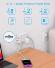【12-in-1 Power Strip with USB Ports】3-Side design surge protector power strip could turns 1 sockets into 8 widely outlets 4 USB Charging port, can power up to 12 devices simultaneously without a variety of converters. 2.2 inchces widely spaced in between outlets, larger than standard socket, fit big adapters without blocking each other. 【15 Ft Flat Extension Cord & Ultra Thin Flat Plug Power Strip】 The 15 Ft flat plug extension cord with multiple outlets, long enough to reach wall outlet sSockets, suitable for the home, office, and college dorm room essentials. With only 0.35 inch flat wall plug, this 15 ft power strip surge protector can infinitely close to the wall, hide in the back of furniture, bed or refrigerator, maximum save you space. The 45° right angle low profile flat plug design keeps anther outlet free. 【2 x USB C Charging Station】 Added dual USB C ports to meet different charging need, the power strip with USB C ports can charge up to 5V/3A. USB-A ports can charge up to 5V/2.4A Max, all USB outlets output is 5V/3.1A. With smart charging technology, the outlet extender can auto-detects your devices and reach faster charging efficiency, perfectly fit for your iphone, ipad, tablet, bluetooth earphone etc. 【1080J Surge Protector & On/Off Switch】This extension cord with the surge protection & overload protection protects your electrical appliances from lighting, surges or spikes. The minimum energy-absorbing capacity of 1080 Joules. The on and off switch can automatically shut off when the power exceeds rated value, to protect your expensive devices like computers, TV, etc. (The "Surge Protected” indicator light on to show your devices are protected) 【Multi Safety Protection】- RoHS, ETL Certificates. This multi plug outlet extender has overload protection, short-circuit protection, over current protection, over-voltage protection and overheating protection. Environmental protection and fire-resistance PC shell with flame retardant at 1382℉ makes it more durable and longer lifetime.
