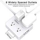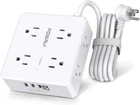 Surge Protector Power Strip - 6 Ft Flat Plug Extension Cord with 8 Widely Outlets and 4 USB Ports(1 USB C), 3 Side Outlet Extender for Home Office, White, ETL Listed Product Details Brand: POWRUI Color: White Total Power Outlets: 8 Voltage: 125 Volts Special Feature: Overload Protection, Surge Protection, Mountable, Usb Slot, Fireproof 【8 Outlets Power Strip with 4 USB Ports】- The 3-side power strip with 8AC widely outlets and 4 USB charging ports total 4.2A, each USB A port features 5V/2.4A Max output. USB C charging port features 5V/3A MAX. can power up to 12 devices simultaneously.Wide range voltage design, can be used on 120v to 240v circuit. 【Surge Protector Power Strip with 3 Side Design & Wide Space】- 3-side design that makes it easier to make the plugs not covering any outlet, and the 8 AC outlets with 1.78 inches long space in between, larger than standard 1.5-inch socket. Larger spacing makes it easier to use for all kinds of equipment.The compact design saves more space, suitable for the home, office, and college dorm room. 【6 Ft extension cord with Flat Plug and Cable Ties】- 6 Feet Right Angled Flat Plug power cord makes it more flexible ,Reusable Fastening Cable Ties Can tie up the unused cord and make it better organized. he two mounting holes on back allows this power strip to be securely installed in various applications. 【Multi Safety Protection】- RoHS, FCC and ETL Certificates. This power strip has overload protection, short-circuit protection, over current protection, over-voltage protection and overheating protection. The surge protector with overload protection protects your electrical appliances from lighting, surges or spikes. The minimum energy-absorbing capacity of 600 Joules. It will automatically cut power to protect connected devices when voltage surge is overwhelming. 【 Our After Sale Service 】- ETL Certificates. Our friendly and reliable customer service will respond to you within 24 hours. You can purchase with confidence, with our 30-day return and 12-month replacement .