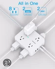 【12 IN 1 Power Strip & 2.2 IN Wide Space】- 3-side design power strip surge protector with 8AC widely outlets and 4 USB (2 USB C) charging ports can power up to 12 devices simultaneously. That makes it easier to make the plugs not covering any outlet, and the 2.2 inchces widely spced in between outlets, larger than standard socket, fit big adapters without blocking each other. The compact design saves more space, suitable for the home, office, and college dorm room essentials 【2 x USB C Power Strip】- Added extra 2 USB C ports for your devices, the USB C port can charge up to 5V/3A. USB-A ports can charge up to 5V/2.4A Max, all USB Ports Output is 5V/3.1A, 15.5W max which is 30% faster than other usb c charging station. With smart charging technology, it can auto-detects your devices and can reach faster charging efficiency, perfectly fit for your iphone, ipad, tablet etc 【Overload Surge Protection】- The surge protector power strip with overload protection protects your electrical appliances from lighting, surges or spikes. The minimum energy-absorbing capacity of 1080 Joules. Lighted on/off switch with integrated circuit breaker for overload protection of all outlets.(The "Surge Protected” indicator light on to show your devices are protected) 【Wall Mountable Extension Cord with Flat Plug】- The low-profile flat plug fits easily in tight spaces; and the right angle flat plug design prevents bottom plug blocking; the 5ft upgraded braided extension cord is very thick and has better current carrying capacity; the two mounting holes on back allows this power strip to be securely installed in various applications 【Multi Safety Protection】- RoHS, ETL Certificates. This power strip has overload protection, short-circuit protection, over current protection, over-voltage protection and overheating protection. It will automatically cut power to protect connected devices when voltage surge is overwhelming. Environmental protection and fire-resistance PC shell with flame retardant at 1382℉ makes it more durable and longer lifetime