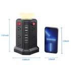 Surge Protector Power Strip Tower with 5 USB Ports and Night Light, 10FT Extension Cord with 12 AC Multiple Outlets, Power Tower, Overload Protection for Home Office Dorm Room (Black) Safe & Reliable Surge Protector Power Strip Tower: To protect you and your valuable electronic devices, this universal power tower has advanced protection technology andFCC, CE safety certification, and the major components such as extension cords have passed UL certification, securer and safer. provides worry-free, friendly customer service Smart Power Strip with Night Light: multi-plug tower with a white light mode that features three brightness levels to let you choose the right amount of light for your own needs Energy Saver ON/OFF Switch Design: The surge protector power strip has 4-separated switches that control 4 parts, making it easy to turn off multiple electronics at once when not in use, easier for you to manage all connected devices, and no more plugging & unplugging hassle! Suitable for various occasions such as home, office, desk, kitchen, etc. 10FT Extension Cord with Multiple Outlets: This vertical power strip with USB ports features 12 AC outlets and 5 smart-charging USB ports (max 2.4A/port, 5A shared),10ft extension cord with thicker copper wires to power multiple devices like for PC, computers, laptops, phones, tablets, TV, printers, speakers, smartphone, and more Power Tower Surge Protector with a built-in surge protector and circuit breaker, It's more quickly and reliably than the traditional surge protector tower circuit and shut off when an overwhelming surge occurs, like that caused by lightning. can protect your TV, and computer from voltage fluctuations, surges, and spikes. 1382 ℉ fire-resistance PC shell