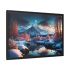 "Ethereal Winter Reverie" – Surreal Abstract Landscape Canvas Print Product Description: Step into a dreamlike world of tranquil beauty with "Ethereal Winter Reverie," an exquisite surrealistic abstract winter landscape by Hypnotik Creations . This mesmerizing piece blends soft pink and blue hues to create an otherworldly atmosphere, featuring snow-kissed mountain peaks, a serene reflective body of water, and a lush forest blanketed in winter’s embrace . The artwork’s unique color palette and ethereal composition evoke a sense of wonder, peace, and quiet contemplation , making it a breathtaking addition to any space. Expertly printed in HDR on museum-quality gallery wrapped canvas , this artwork is crafted using a premium cotton-polyester composite with a proprietary matte finish coating , ensuring vibrant, long-lasting colors and sharp, high-definition detail . Using UL-certified Greenguard Gold inks , which are non-toxic, non-hazardous, and non-flammable , this piece delivers exceptional image clarity while remaining environmentally friendly . The artwork is framed in a 1.25" solid pine wood frame with an elegant espresso finish , offering a sophisticated floating effect that enhances its modern appeal. The Forest Stewardship Council (FSC) certified wood ensures a sustainable and eco-conscious choice , perfect for those who appreciate both art and the environment. Designed for effortless display , this piece arrives ready to hang with pre-installed sawtooth hardware , making installation a breeze. Due to the precision-crafted production process , slight size variations of +/- 1/8" (3.2mm) may occur . To maintain its pristine condition, simply wipe the surface with a clean, damp cloth as needed. ✨ Key Features ✨ ✔ Dreamlike Winter Landscape – A surreal abstract scene featuring soft pink and blue hues, snow-capped mountains, lush winter forests, and a tranquil reflective lake . ✔ HDR Printing on Museum-Quality Canvas – Cotton-polyester composite with a proprietary matte finish ensures stunning vibrancy and crisp detail . ✔ Eco-Friendly, Non-Toxic Inks – Printed with UL-certified Greenguard Gold latex inks , safe for any space and environmentally responsible . ✔ Elegant Floating Frame in Espresso – 1.25" solid pine wood frame enhances the artwork with a modern, sleek aesthetic . ✔ Sustainably Sourced Materials – Forest Stewardship Council (FSC) certified wood frame promotes eco-conscious craftsmanship . ✔ Ready to Hang – Comes fully assembled with sawtooth hardware attached , allowing for hassle-free installation . ✔ Easy to Maintain – Simply wipe with a clean, damp cloth to keep your artwork looking fresh and vibrant . ✔ Precision-Crafted – Slight size variations of +/- 1/8" (3.2mm) may occur due to the production process. Let "Ethereal Winter Reverie" transport you to a peaceful, surreal winter landscape , filling your space with a sense of calm, beauty, and artistic sophistication . Perfect for any modern, minimalist, or dream-inspired interior , this stunning gallery-wrapped canvas is sure to captivate and inspire . 🌙❄️🎨 4o