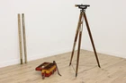 Item # 52916 A surveyor's transit or theodolite includes a carrying case, two sight sticks, and a tripod. Vintage surveyor tools signed "Keuffel & Esser" of New York Working condition unknown Painted wood case, tripod & sight sticks have losses to paint & shrinkage separations from age - see photos No keys Brass and steel transit with an original painted finish, has losses to finish - see photos Solid walnut tripod Sight sticks attach together Original leather carrying strap on wooden case Case size is 20" wide, 6.5" deep and 10" tall. Two sight sticks are 54.5" long, 2" wide and 1" deep each. Tripod size is 34" wide and 58" tall. Please view 18 photos at full screen size for best detail. Related items in photos are sold separately. Important Shipping information: We offer significant discounts for shipping multiple pieces out of state. Posted ship rate based on GROUND FLOOR delivery from a trusted blanket wrap service provider. Most deliveries occur within 30 business days of payment, some slightly longer, some shorter. IMPORTANT: AZ, CA, CO, ID, MI, MT, NE, ND, NM, NV, OR, SD, UT, WA, WY and New York City are serviced by a courier van with ONE DRIVER , adequate physical help from the homeowner to unload is required. *Deliveries that require stairs or elevators take more time and can usually be completed with advance notice and a surcharge. *Items requiring a ferry or remote area (Mountain homes, Islands, Keys, etc.) may be excluded from posted rates. *Delivery to properties with COI requirements or limited hours for service may be excluded from posted rates or additional charges may apply. Contact us for more information. Discount rates available to many areas in WI, IL, MN as well as FREE Store Pick Up in Kaukauna, WI. Contact us for more information. Store Information Payment methods The Harp Gallery 2101 Progress Way Kaukauna, WI 54130 Shipping & Handling Buyer pays shipping. Contact us to request independent shipping quotes on Freight Items. Also visit our eBay store for shipping info . Sales tax 5.5% sales tax applicable for WI buyers and customer pickup in Kaukauna, WI. Customer Service & Return Policy We are only happy with satisfied customers! Please reach out to us with any concerns or questions. Return policy: 15% restocking fee/buyer pays return shipping.