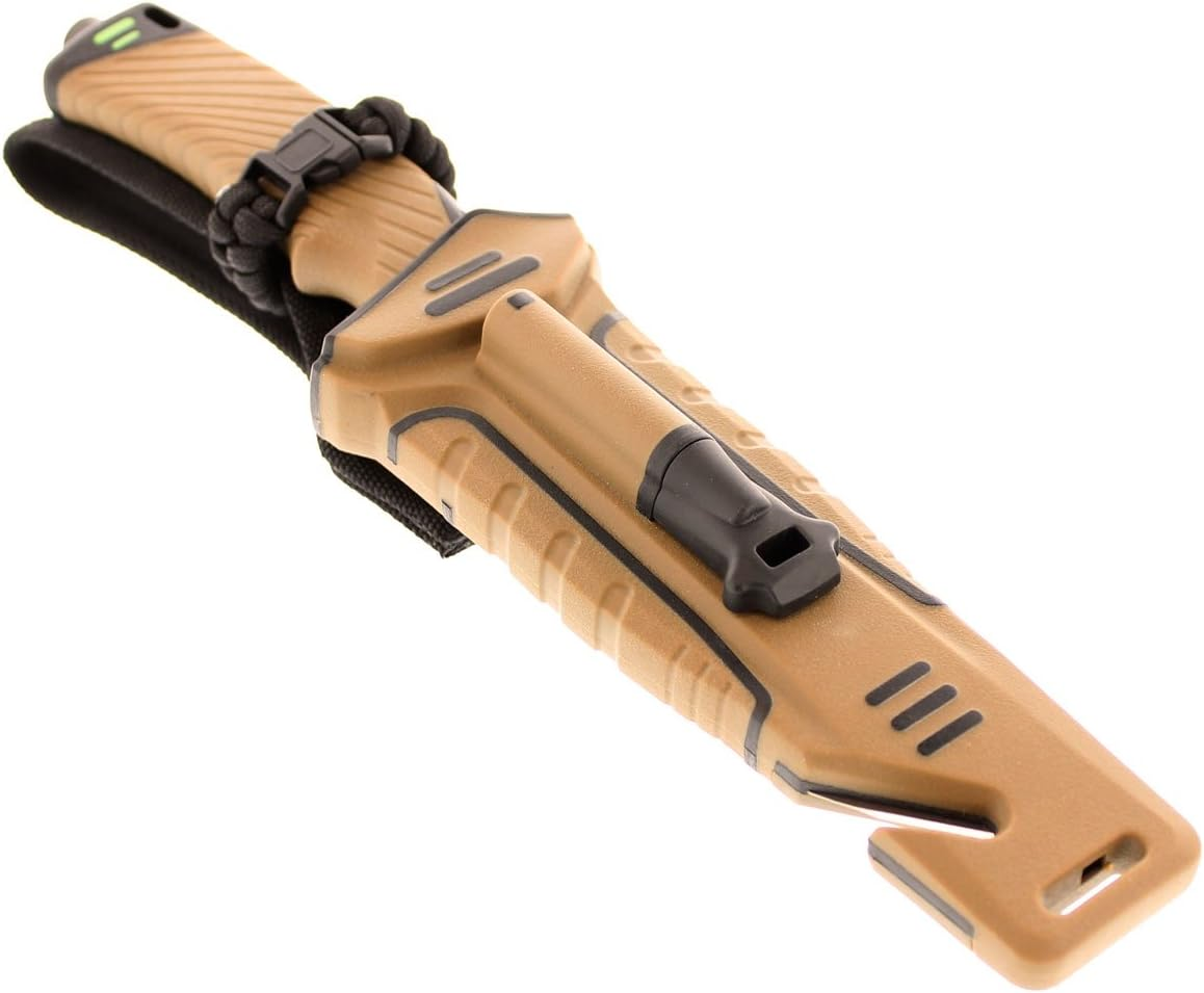 StatGear survival outdoor knife is a stainless steel full tang knife. This durable knife can handle anything especially the tough outdoors. Features a drop point blade equipped with a blade sharpening stone in rear of sheath so your knife is sharp & sturdy consistently. Fire starter and cord cutter in sheath. The cord cutter works well for minor cuts so you don’t have to take out your knife. If you enjoy hunting and all other outdoor activities, you'll find the StatGear Surviv-All Outdoor Knife a convenient and practical choice for your go-to knife. The Surviv-All Survival Knife From Statgear Has A High Carbon 440 Stainless Steel Full Tang, Drop Point Blade. It Has A Rubber Textured Handle With A Stainless Steel Pommel On The Handle Bottom. The Heavy Duty Belt Sheath Includes A Fire Starter Rod And Cord Cutter So You Don'T Have To Take Your Knife Out For Minor Cuts. There Is An Integrated Knife Sharpener Stone On The Rear Of The Sheath. The Knife Handle Is Secured To The Sheath With The Patent-Pending Para-Secure Paracord Handle Strap. Knife Length: 9. 5 Inches Blade Length: 4. 25 Inches Knife Weight: 7. 5 Ounces Knife Weight In Sheath: 13 Ounces.